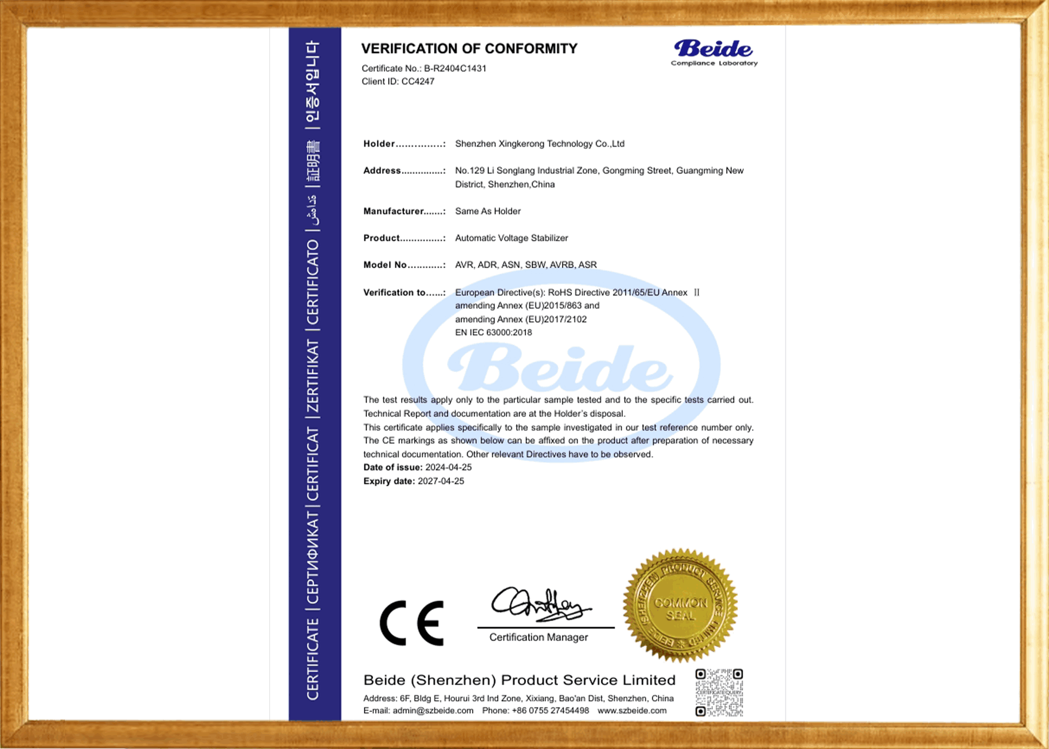 Shenzhen Xingkerong Technology Co., Ltd. se fundó en 2007. Shenzhen Xingkerong es una fábrica de productos para la industria de suministro de energía que integra investigación y desarrollo, producción y servicio posventa. Su principal producción consiste en productos de energía industrial, como reguladores de voltaje inteligentes, transformadores, fuentes de alimentación de frecuencia variable, fuentes de alimentación SAI, etc. El diseño y las pruebas de los productos cumplen estrictamente con los estándares y requisitos de la industria, así como con las normas GB, IEC y otras normas relevantes. La empresa y sus productos han superado las certificaciones y pruebas pertinentes, como ISO9001, SGS, CE, RoHS y TUV. Asimismo, Shenzhen Xingkerong es una empresa nacional de alta tecnología.